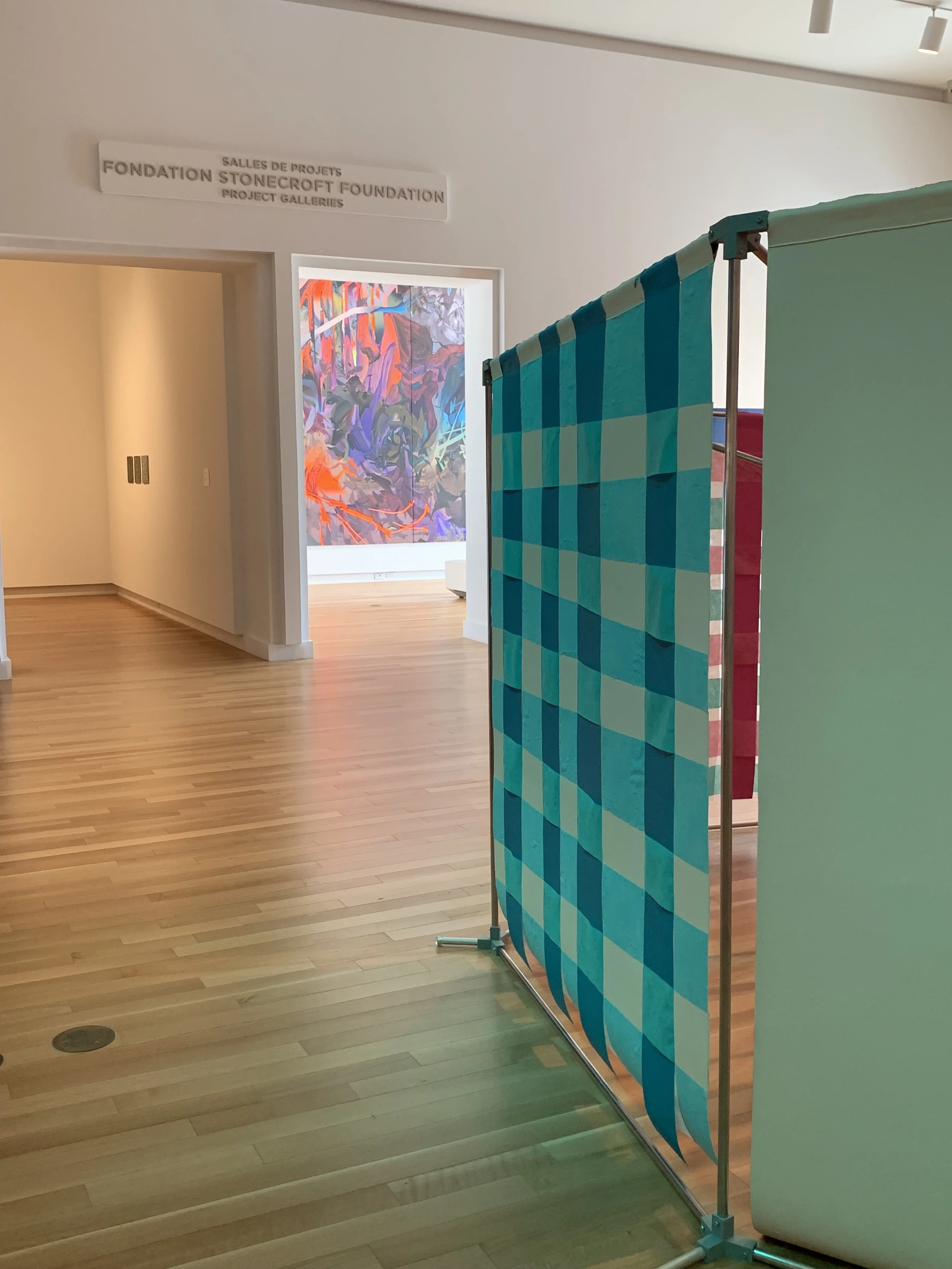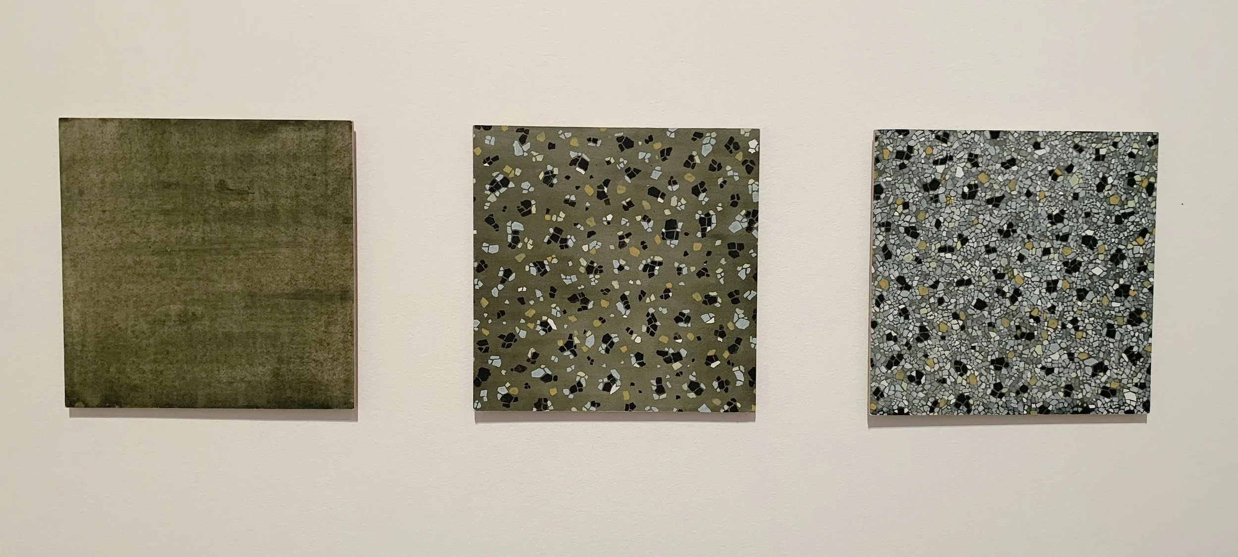 Then with Heer—we’re already dealing with a divergence of place and self—[her] terrazzo tile paintings [Getting to know you… (triptych)] she started making when she first arrived in Canada from India as an international student. And so, there’s three paintings and they accumulate more detail of the floor as you go along. For her, there’s a disorientation of being in a new place that you don’t really recognize, it's a huge culture shock, and she’s trying to piece together what it means to be there.